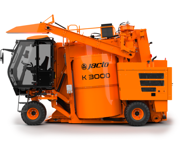 A colhedora K 3000 oferece alta eficiência com um sistema derriçador veloz e transportadores com capacidade para mais de 14.000 litros de café por hora. Menos paradas por travamento e largura de entrada de 1,5 metros, a maior entre as colhedoras, reduzem danos e perdas de café.